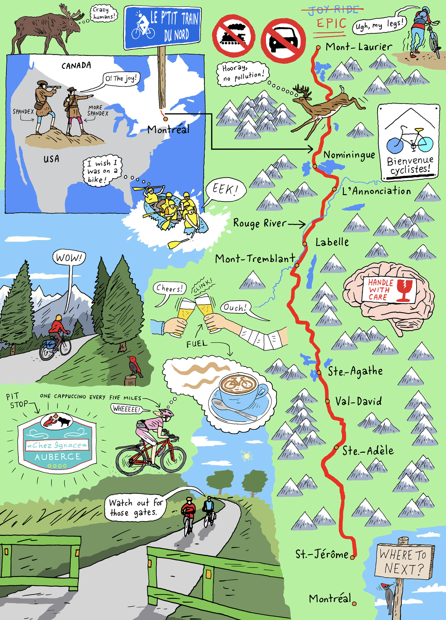 The ride to Sainte Jérôme was easy peasy. It felt like cheating. We coasted and coasted. Pedaled a little, and coasted some more.