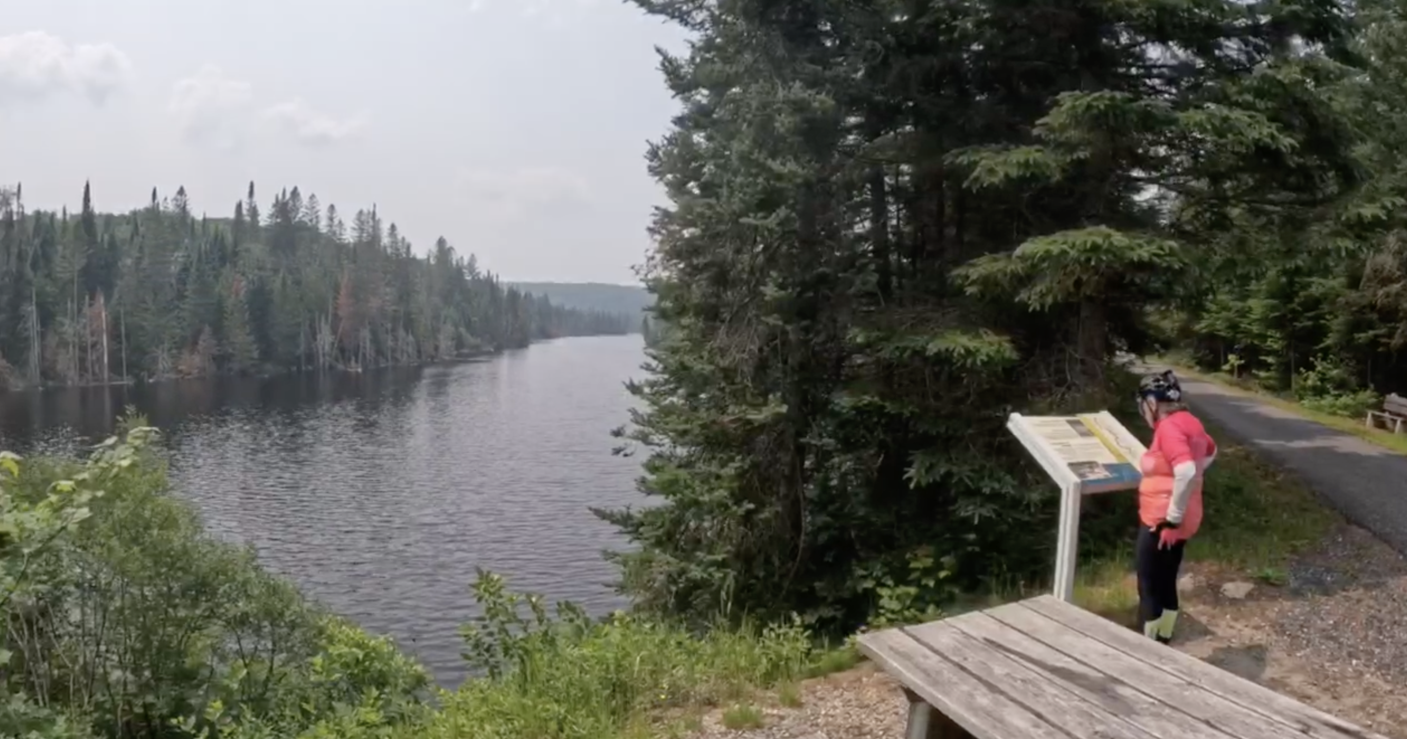 We drove to St Jerome, parked in the lot next to the caboose, caught the bicycle shuttle to Mont Laurier and bicycled back. We lucked out on the rain and the wildfire smoke.