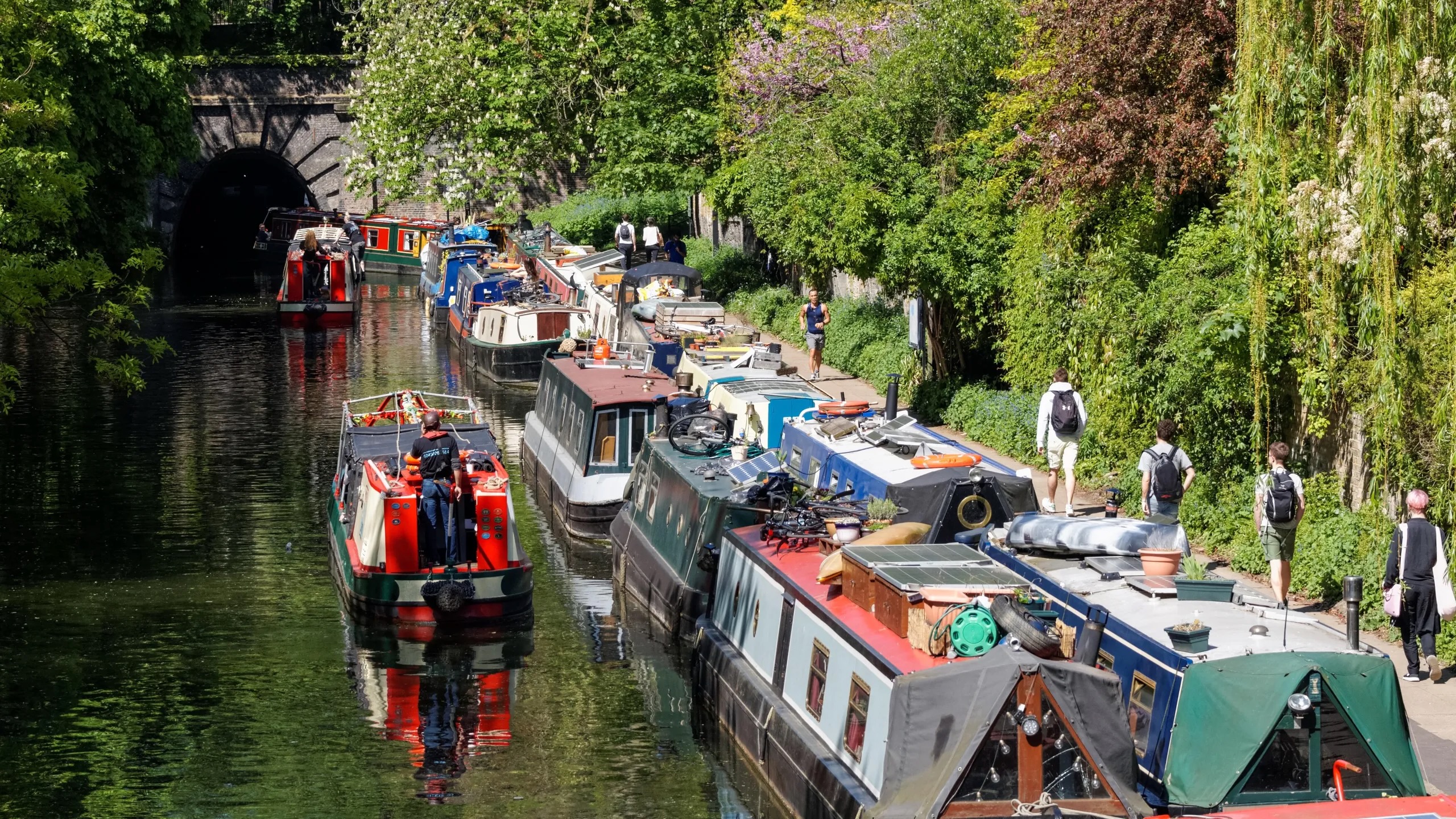 Or more accurately the tow paths along the Regent’s Canal. The Regent’s Canal was built in the early 1800s. At that time, horses towed boats on paths alongside the canal. Today these paths have been paved and are used by walkers and bicyclists. They are most scenic and much in demand, as we were soon to find out.