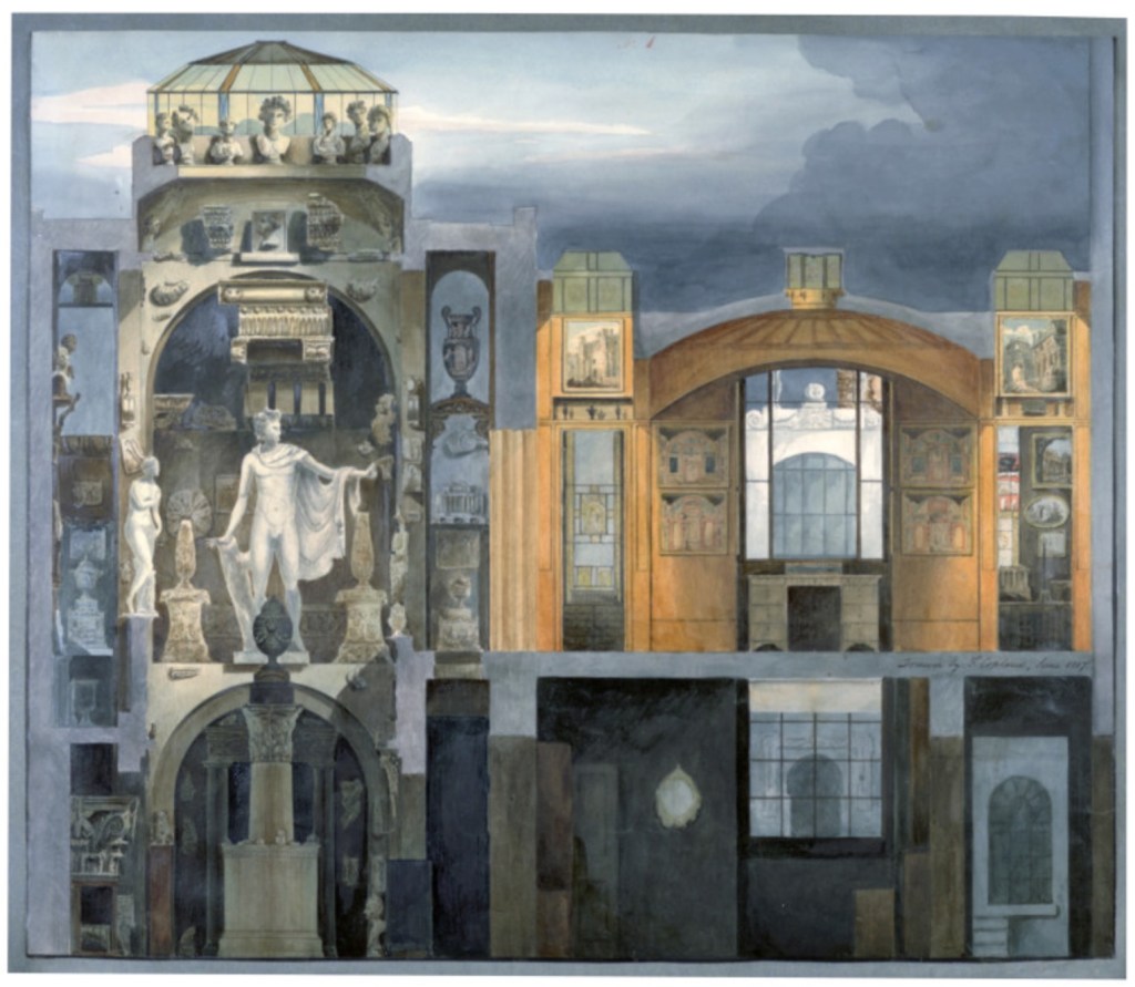 Which is part of it’s charm. If there is a method to the madness, it would be the architectural spaces. Below is a section through the museum from 1818.