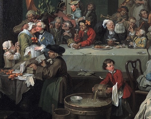 So much detail. I’m going to put it in a slideshow below. First the full painting and then a few closeup vignettes to muse over. This painting is all about what it takes to get elected, and the corruption endemic in the electoral process. Same old, same old.