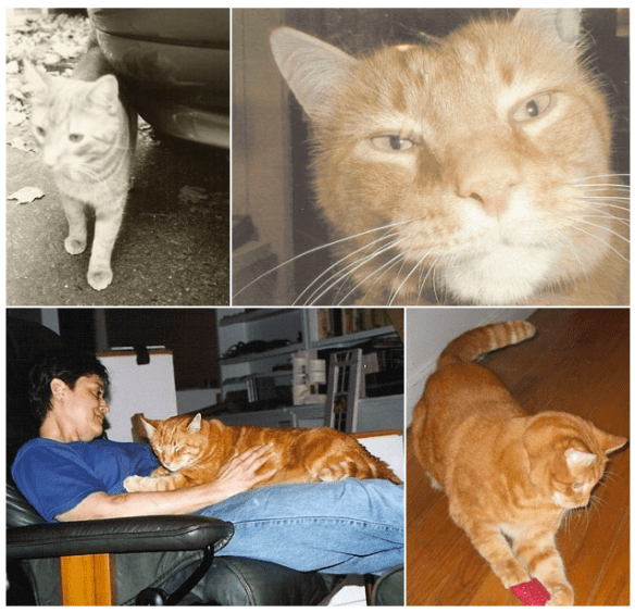 YB was one smart cat. After he was gone, we were all sitting around reminiscing and I’m not alone in remembering him jumping up and grabbing the apartment door knob with his paws and trying to turn it.