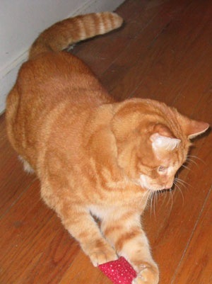 My business partner’s wife, Francine, would send YB Xmas presents. This catnip filled delight was one of YB’s favorites.