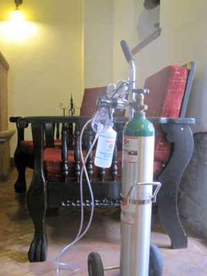 The morning we arrived at Hotel Andenes al Cielo in Cuzco, I spotted an oxygen tank in the lobby.