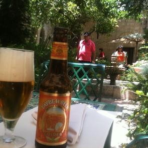The courtyard of the American Colony was just about the perfect spot to contemplate the question of Israeli vs Palestinian – beers.