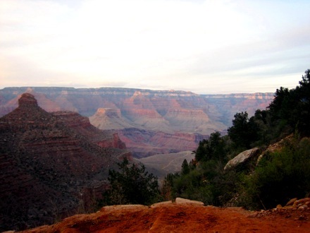 By 5:50 we were on the shuttle bus to the S. Kaibab Trailhead. The crowd on the bus was a curious mix of sleepy park employees heading to work, tourists heading to overlooks for sunrise, and apprehensive hikers like ourselves who weren’t quite sure what they were in for.