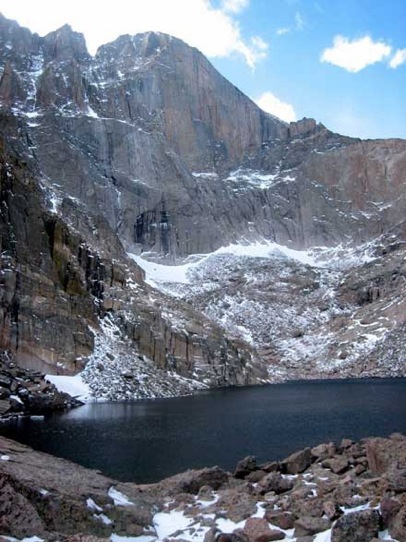 When I reached Chasm Lake at 11,760 feet, it looked like a very little lake in a very big and powerful place. I felt far far smaller yet.