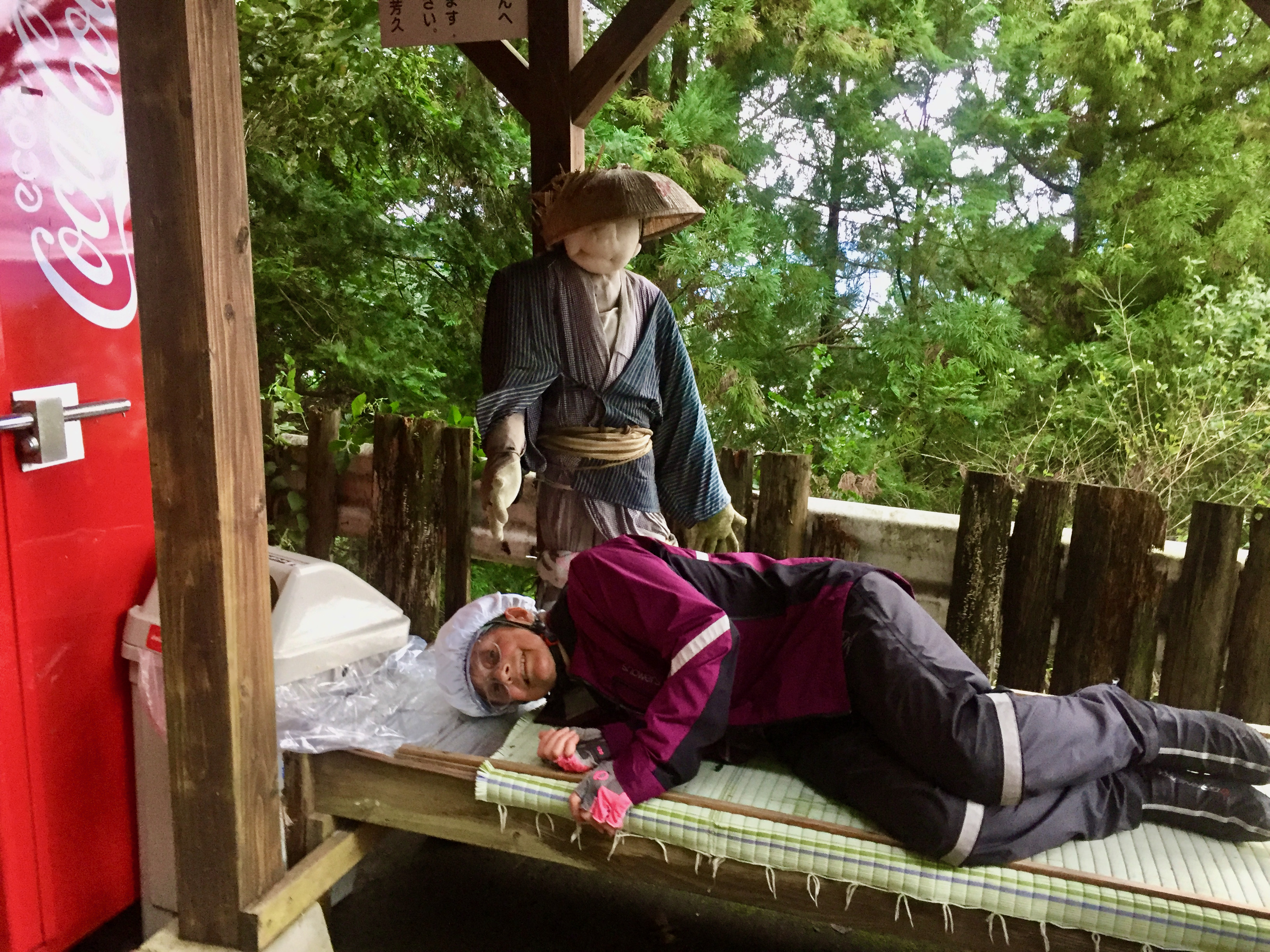 But here at the pass was a pilgrim shelter complete with bed, vending machine, and life-sized, fully-clothed pilgrim dolls. We knew what we were seeing and it was perfect. The real deal.