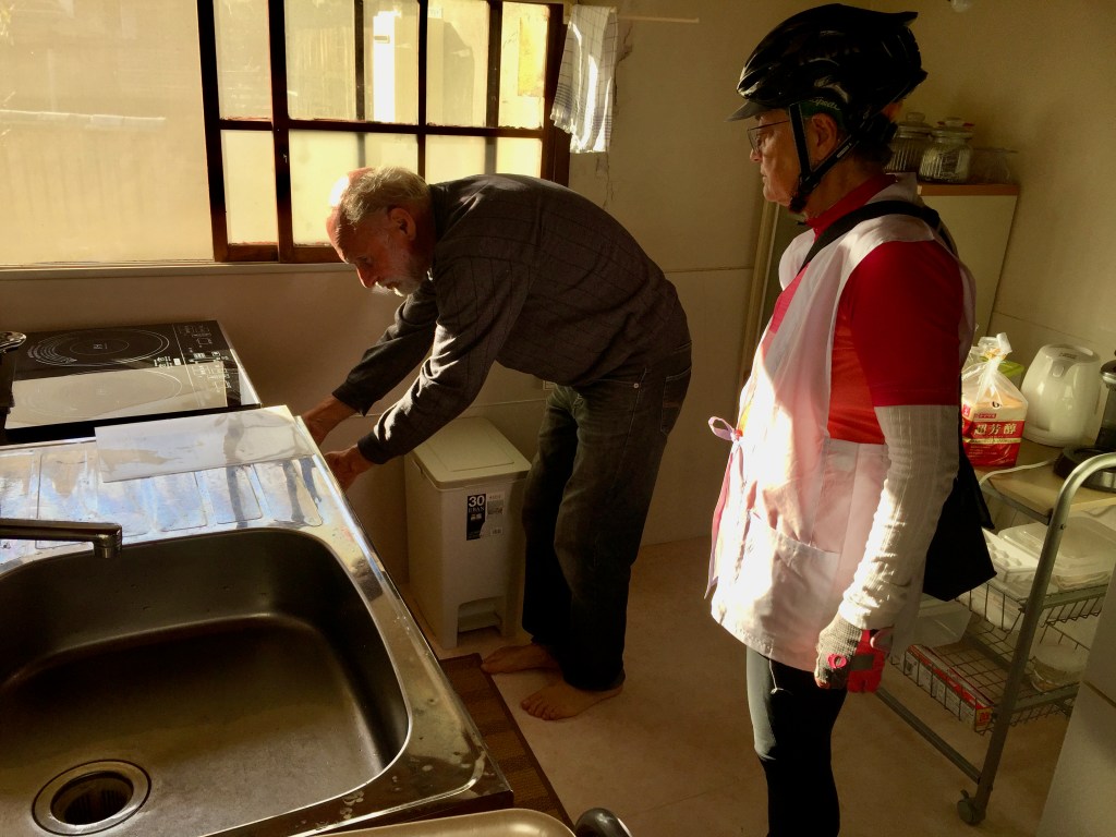 We had the place to ourselves. After a shower and soak, our young female host kind-of burst into our room, to get our laundry.